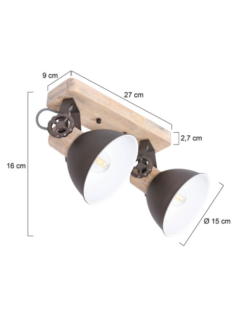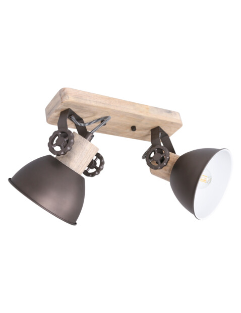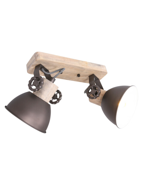 ¡Agrega un bonito acento industrial a tu interior con este doble foco de techo industrial en antracita de Mexlite! Este foco de techo cuenta con una placa de madera en la pared, sobre la cual están fijadas las lámparas con soportes de acero. Los ruedas giratorias no solo son un bonito detalle, sino que también te permiten orientar las dos pantallas de manera independiente. Así puedes usar una lámpara para crear un hermoso efecto de luz difusa a lo largo de tu techo, y la otra para iluminar una hermosa obra de arte en la pared. ¿A quién no le gustan las lámparas de techo robustas?