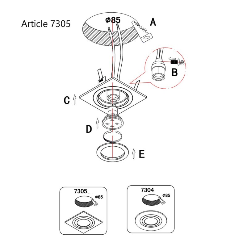 El moderno foco empotrable cuadrado de la serie Pélite de Steinhauer combina un diseño elegante con una iluminación versátil. Este accesorio blanco de metal de 10×10 cm es tanto inclinable como giratorio, lo que te permite dirigir la luz exactamente donde la necesitas. Gracias a la base GU10, el foco es compatible con bombillas LED y halógenas. Con una profundidad de instalación de 7 cm y un diámetro de instalación de 85 mm, este foco encaja perfectamente en diversos espacios, incluyendo baños (zona 3). El sistema de muelles de sujeción garantiza una instalación sencilla. Una elección elegante para un interior limpio y funcional.