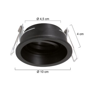 El foco empotrado Pélite en metal negro tiene un diseño elegante y moderno. Con un diámetro de 10 cm y una fuente de luz inclinable, ofrece flexibilidad en la iluminación. Adecuado para fuentes de luz LED GU10 y fácil de montar a través del sistema de muelles de sujeción. El diámetro del agujero de perforación de 85 mm lo hace adecuado para la instalación en diversos lugares, incluida la zona 3 del baño. Este foco de la marca Steinhauer se entrega con 2 años de garantía.