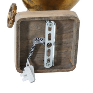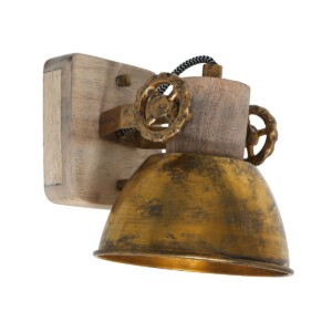 ¡El retro ha vuelto! Genial, este foco de techo orientable “Gearwood”. Mexlite ha creado una hermosa combinación de madera y metal. En una base cuadrada de madera se encuentra un mecanismo metálico de orientación con engranajes. El foco en sí tiene una pantalla metálica y un porta-bombilla de madera. La madera es natural y las partes metálicas son de color bronce. Es muy divertido orientar esta lámpara hacia un póster retro.