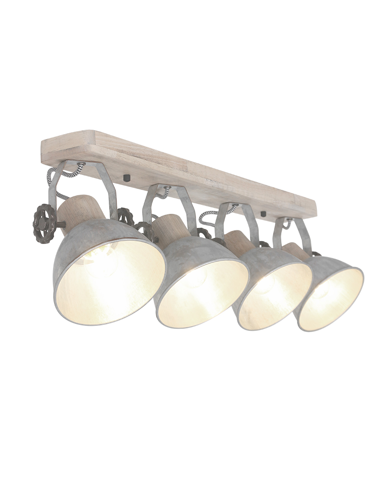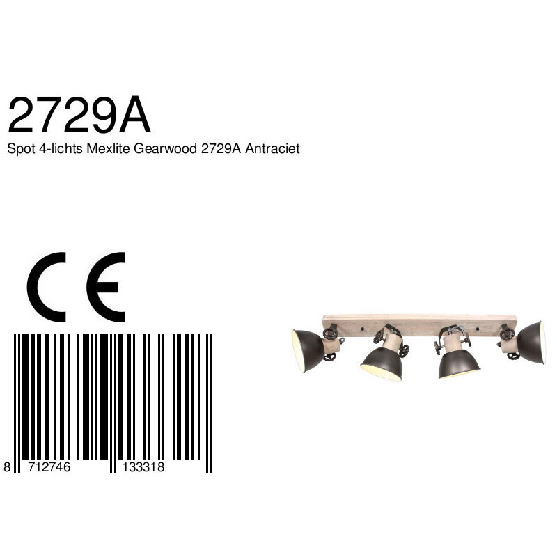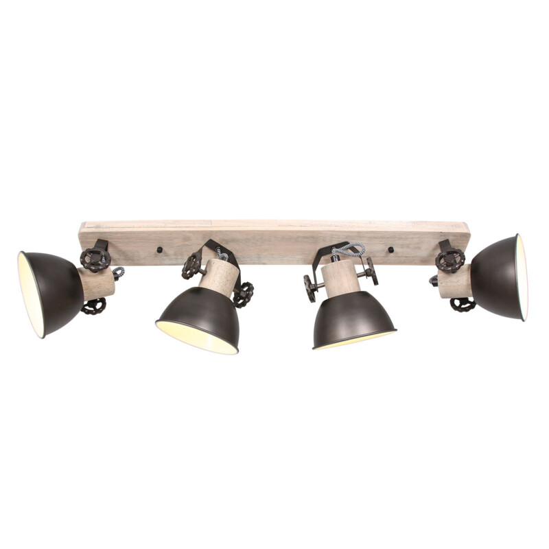 Impresionante este plafón de cuatro luces “Gearwood”. “Gearwood” es una serie exitosa de Mexlite y se caracteriza por la combinación de madera con metal. Todas las luces de esta serie tienen bonitos engranajes para dirigir las lámparas. En este modelo “Gearwood”, los cuatro focos y otros detalles metálicos son de color antracita. Los portabombillas y la placa del techo son de madera. Muy agradable en un estilo de hogar rural, industrial o retro.