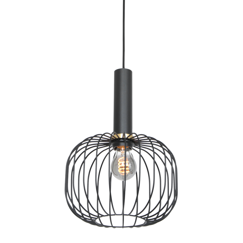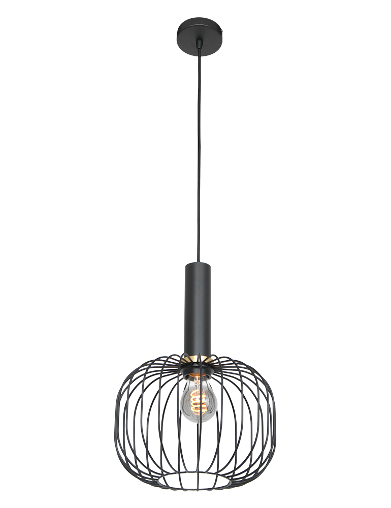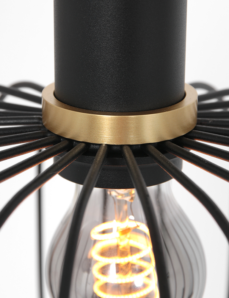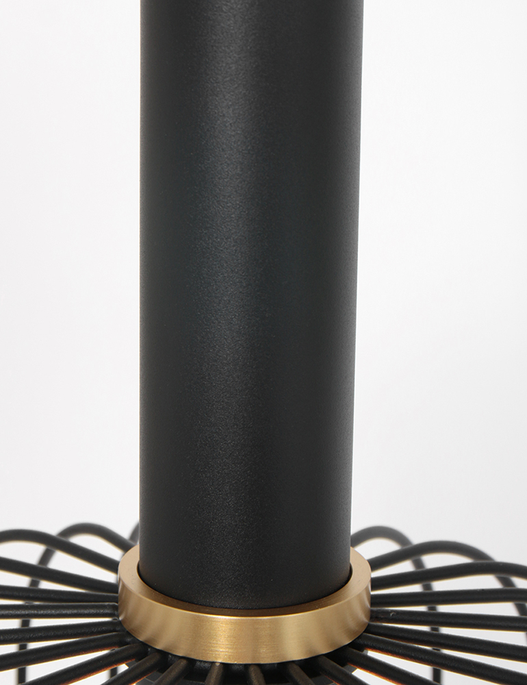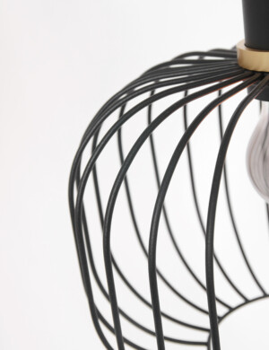 Algunas lámparas colgantes cuelgan como un bloque en tu habitación. Ocultan la vista de cuadros, paredes y armarios altos. Si eliges una lámpara de jaula, no tendrás este problema. Una jaula funciona de forma espacial, ya que puedes ver a través de ella. La moderna “Aureole” de Mexlite es una lámpara de alambre negra con detalles dorados. ¡Tu sala de estar nunca había sido iluminada de manera tan acogedora!