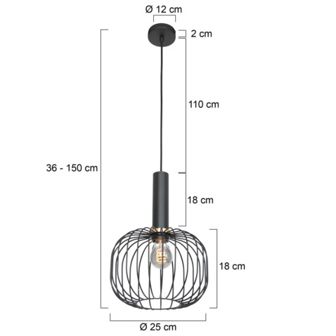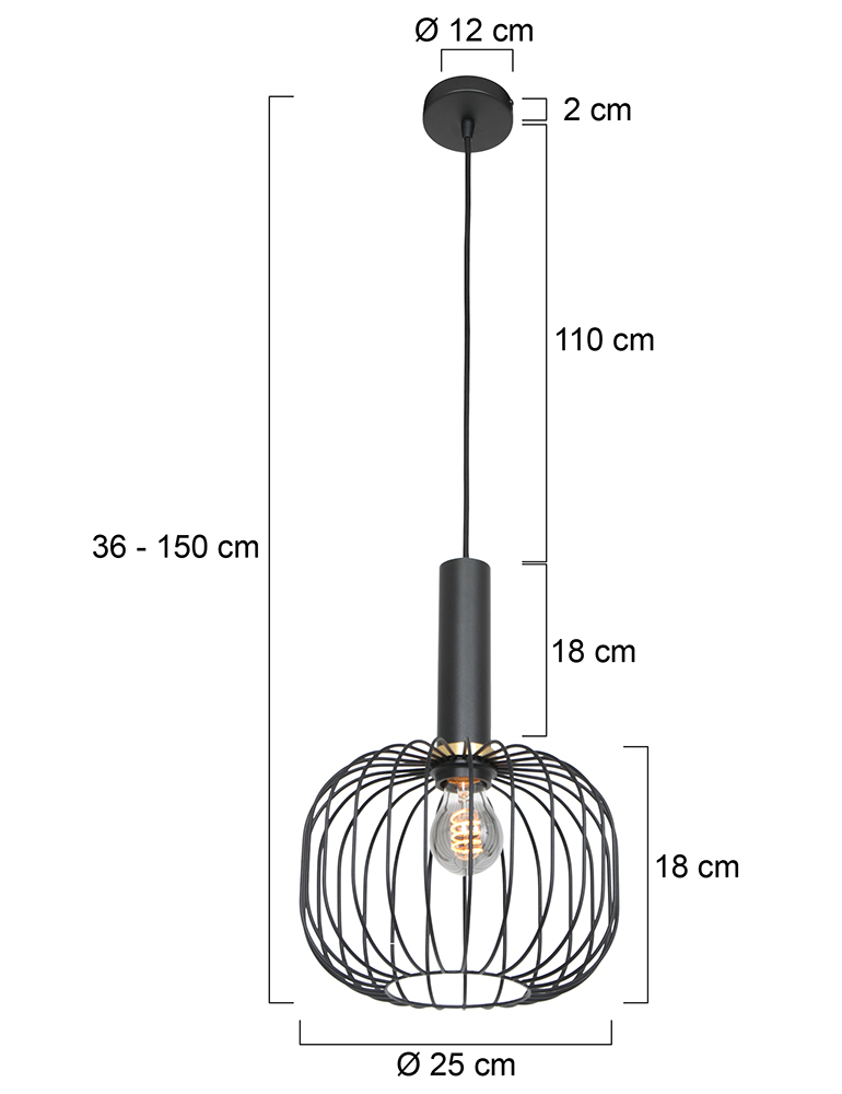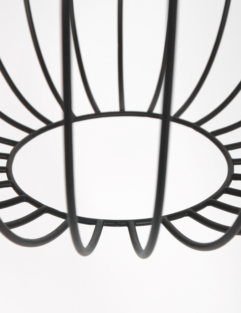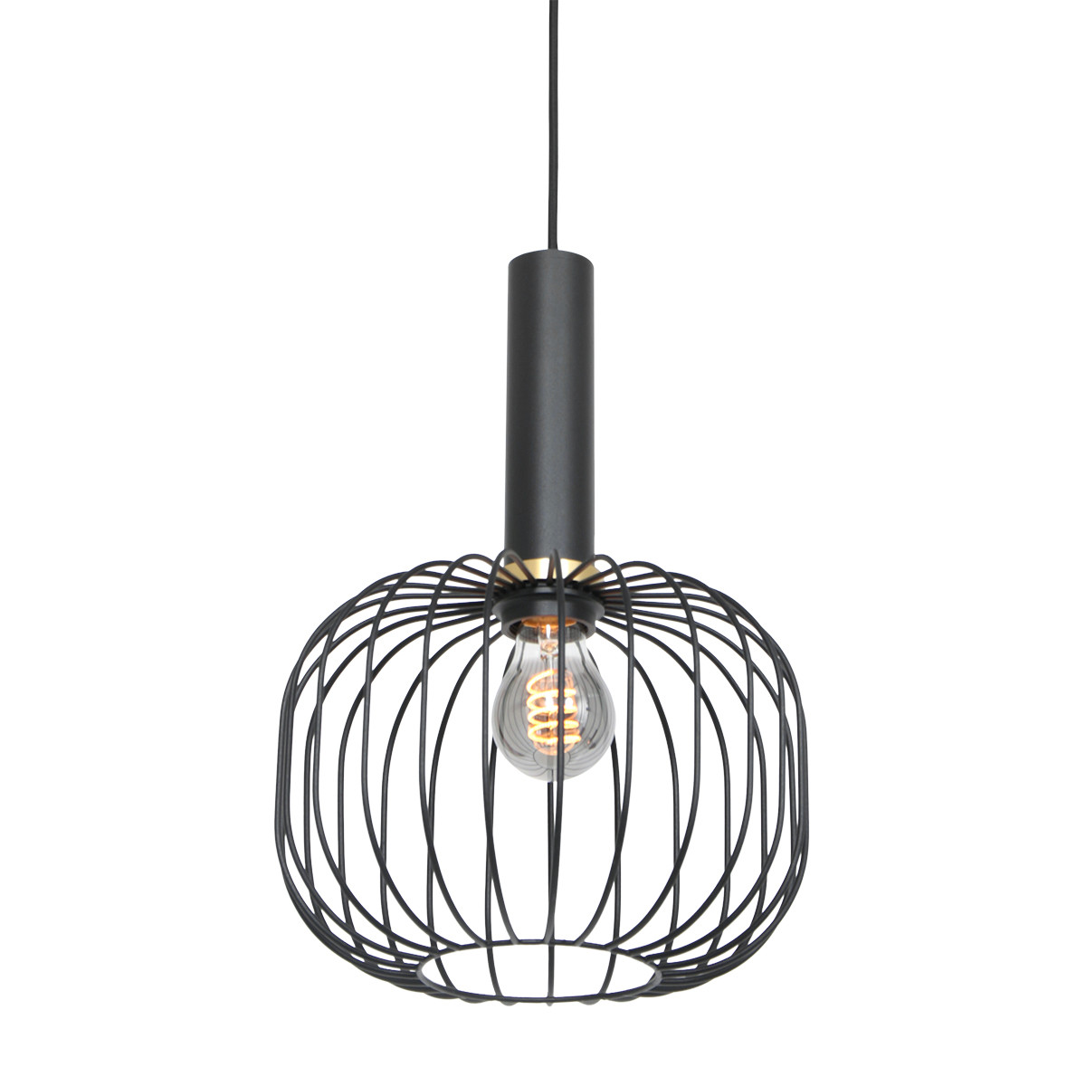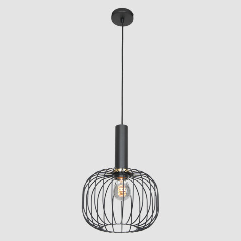 Algunas lámparas colgantes cuelgan como un bloque en tu habitación. Ocultan la vista de cuadros, paredes y armarios altos. Si eliges una lámpara de jaula, no tendrás este problema. Una jaula funciona de forma espacial, ya que puedes ver a través de ella. La moderna “Aureole” de Mexlite es una lámpara de alambre negra con detalles dorados. ¡Tu sala de estar nunca había sido iluminada de manera tan acogedora!