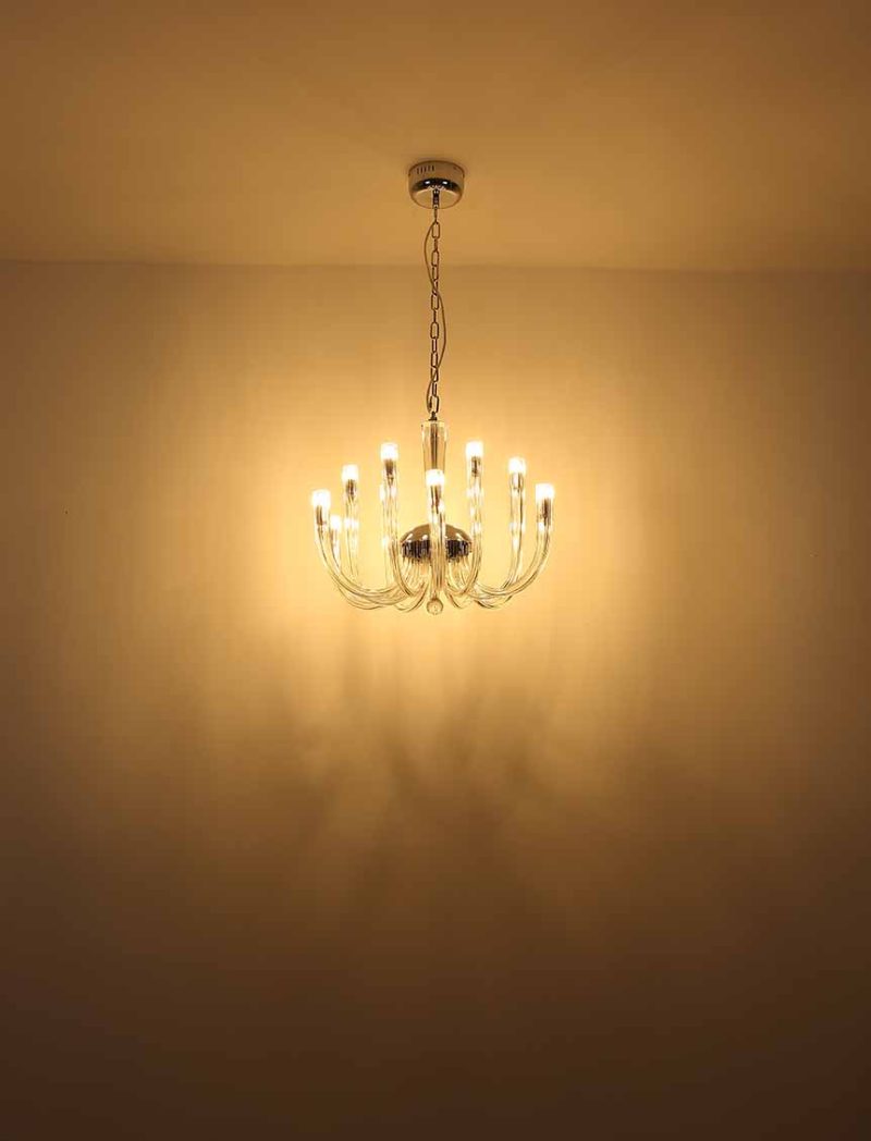Lámpara araña diseño cromado de 18 luces metal/vidrio Globo Akko