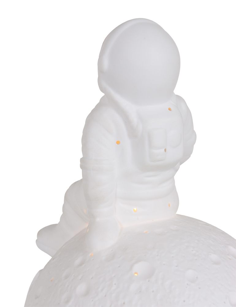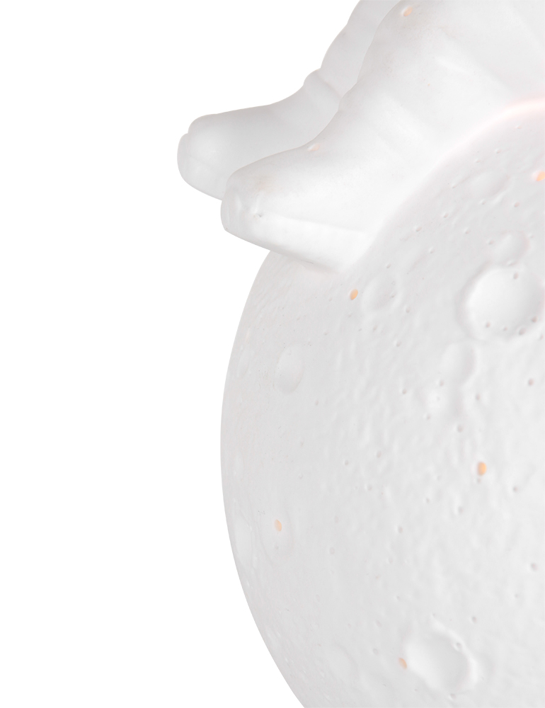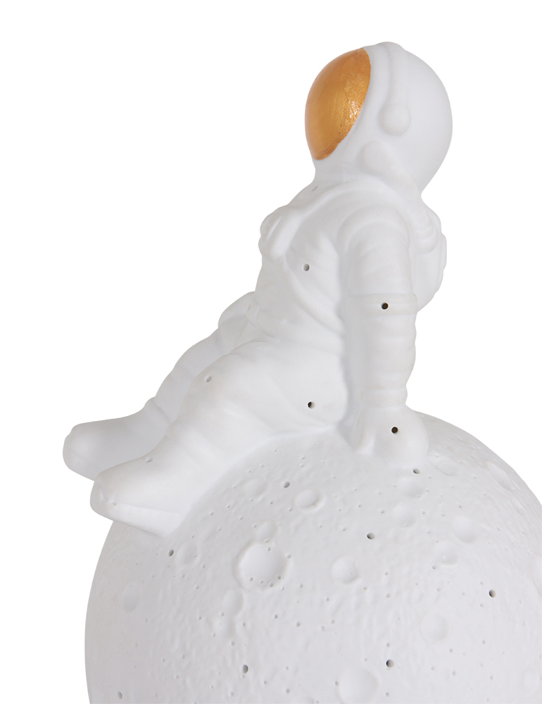 ¿Crees en los cuentos de hadas? El hombre en la luna es un cuento antiguo que explica la cara en la luna. El dúo de diseñadores Anne Light & Home revive el cuento con esta fantástica lámpara de mesa. En su luna hay un hombrecito. A través del visera de su traje de astronauta brilla la luz, al igual que a través de los muchos agujeros o cráteres de la luna para crear un ambiente más acogedor en tu habitación (dormitorio)!