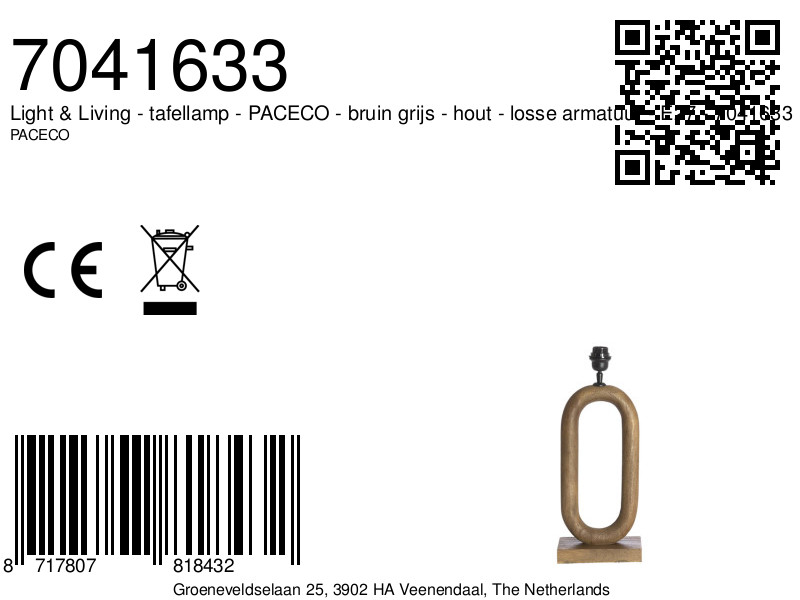 Pie de lámpara PACECO de Light & Living con diseño robusto de madera en combinación de gris y marrón oscuro.