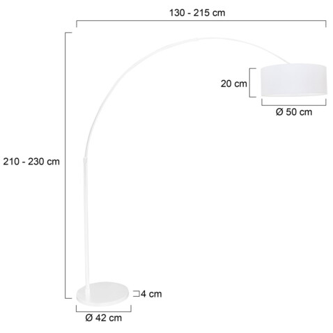 La gran lámpara de arco de la serie Sparkled Light de Steinhauer es una impresionante muestra de diseño que combina estilo y funcionalidad sin esfuerzo. El esbelto marco metálico blanco se complementa con una generosa pantalla de lino blanco con un diámetro de 50 cm, que asegura una distribución de luz suave y uniforme. Gracias a su amplia ajustabilidad en altura de hasta 240 cm y una longitud extensible de hasta 230 cm, esta lámpara se puede posicionar de manera flexible para una iluminación perfecta.