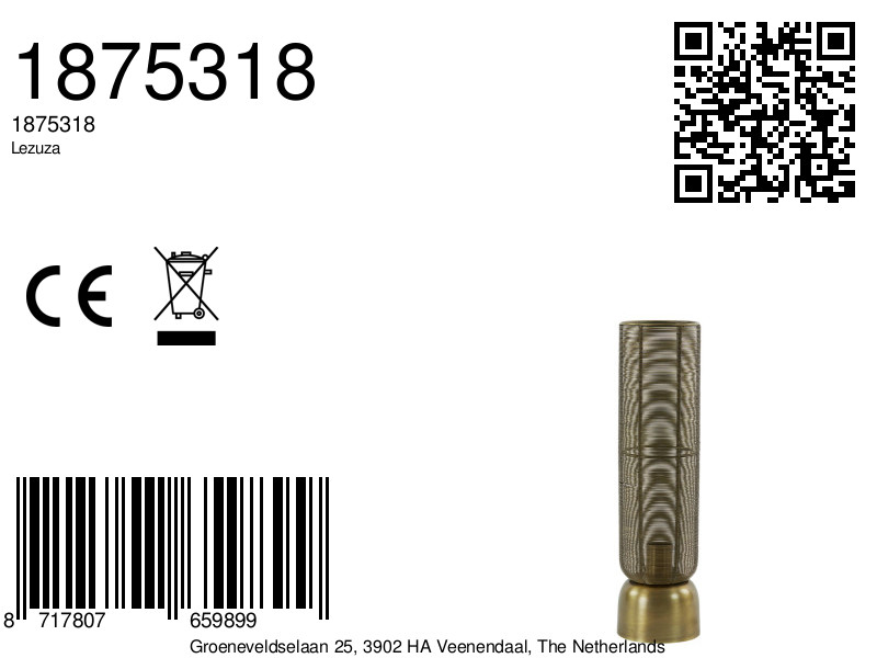 Descubre esta hermosa lámpara de mesa de bronce de Light & Living, fabricada con cuidado en metal de alta calidad. La elegante pantalla cilíndrica ofrece una cálida estética y crea un ambiente acogedor en cualquier espacio deseado. Con una altura de 49,5 cm, un largo de 13,5 cm y un ancho de 13,5 cm, esta lámpara es ideal para usar en su comedor, cocina, dormitorio o sala de estar. La lámpara es fácil de usar con un interruptor de cable y se vende sin fuente de luz, lo que le brinda la libertad de elegir una bombilla de bajo consumo según su preferencia. Esta lámpara forma parte de la familia Lezuza y ha sido diseñada especialmente para uso en interiores, por lo que encaja perfectamente en una decoración de inspiración oriental.
