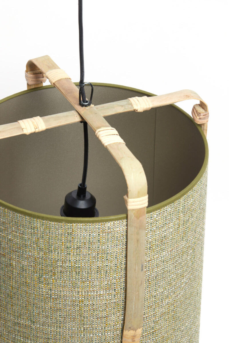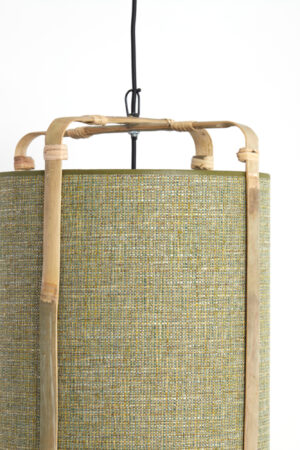 Esta lámpara colgante en forma cilíndrica, en un sofisticado tono verde, es un verdadero atractivo para diversos interiores. La reconocida marca Light & Living destaca por su calidad y estilo; esta lámpara, fabricada con bambú de alta calidad, añade un cálido y natural encanto a cualquier habitación. Con unas dimensiones de 27 cm de largo, 27 cm de ancho y 56 cm de altura, este diseño es perfecto para colocar sobre la mesa del comedor, en la cocina o en el pasillo. El elemento de elegancia del estilo Japandi se refleja en la refinada apariencia de la lámpara, que se controla a través de un interruptor de pared. Tenga en cuenta que la lámpara se entrega sin cable con enchufe, por lo que debe conectarse directamente a la red eléctrica.