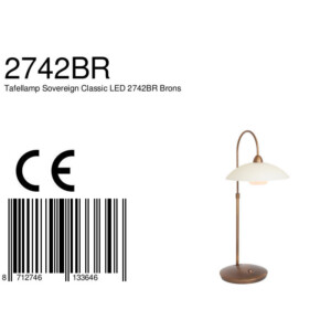 La lámpara de mesa de la serie Sovereign Classic combina un diseño clásico con tecnología moderna. La base de bronce curvada termina en un elegante plato de vidrio, donde una bola blanca evita que la fuente de luz LED sea visible directamente. El módulo LED integrado de 3 vatios produce un color de luz cálido de 2700 Kelvin y una salida de luz de 300 lúmenes. El regulador integrado en la base ofrece la posibilidad de ajustar la intensidad de luz según se desee.