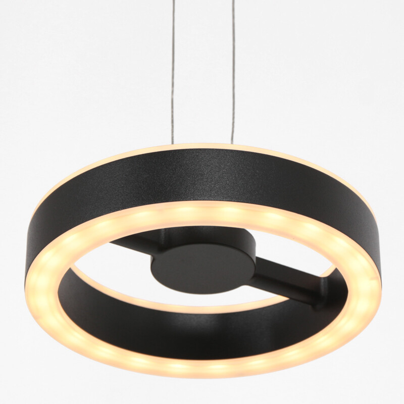 Haz una declaración con la lámpara colgante Piola de Steinhauer. El acabado negro cepillado y los anillos transparentes le dan a esta lámpara un aspecto moderno e industrial. Con su forma elegante y su iluminación funcional, esta lámpara colgante es un complemento estiloso para cualquier interior.