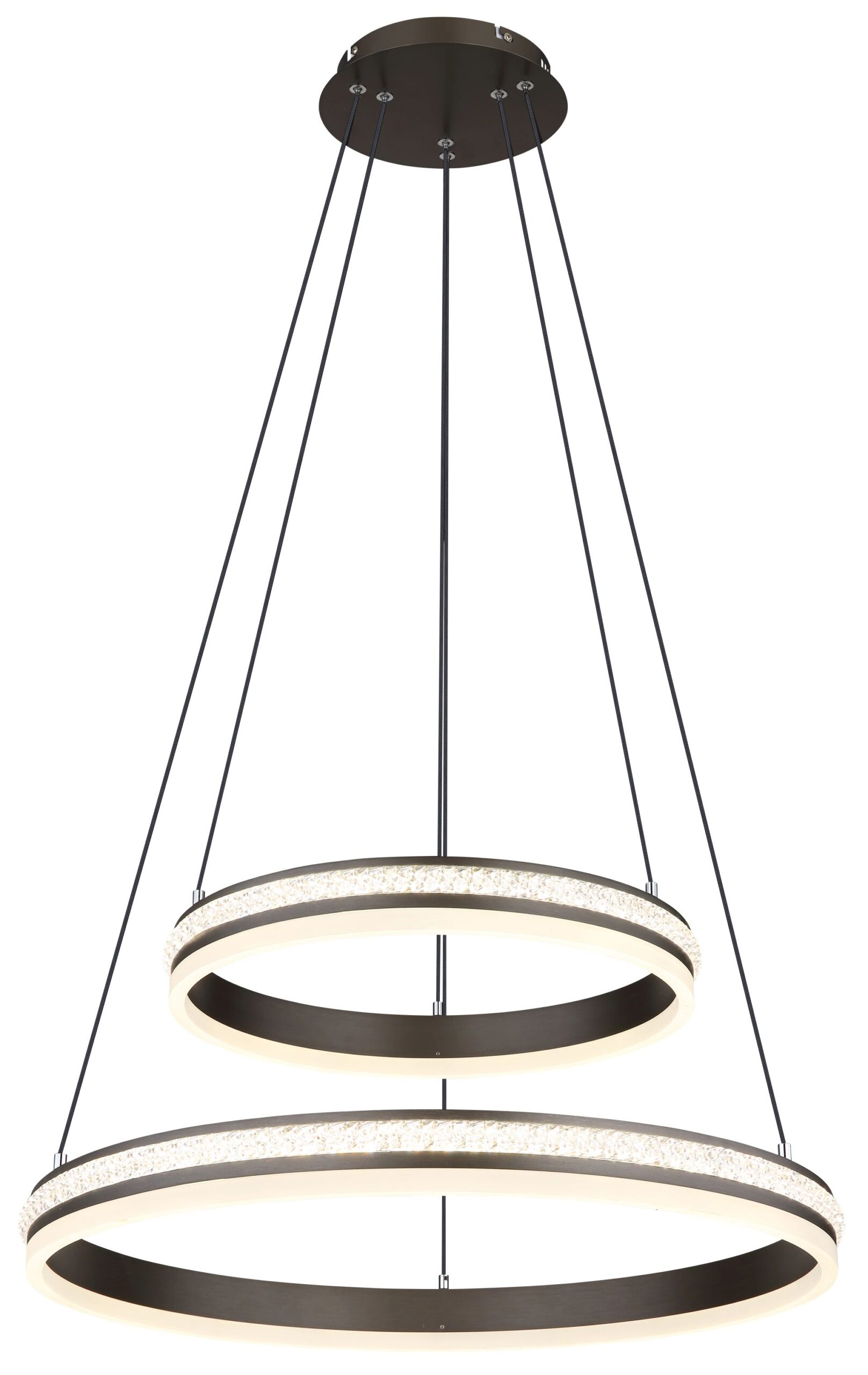 La GROUNI es ajustable en altura y se entrega con un práctico control remoto, incluyendo batería (2x AAA). Con un diámetro de 600 mm y una altura de 1200 mm, complementada con un aro de 60 cm y otro de 40 cm, esta lámpara proporciona una iluminación generosa e impresionante. El LED de bajo consumo con una potencia de 60W y una salida de luz de 3387 lúmenes da vida a tu espacio y hace una declaración de estilo, elegancia y clase.