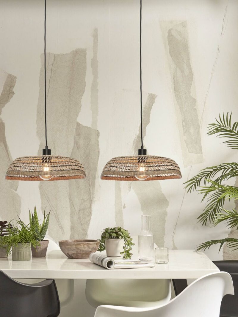 En Lamparas-en-linea ofrecemos una amplia gama de opciones de iluminación GOOD&MOJO, perfectas para cada habitación de tu hogar u oficina. Desde elegantes lámparas colgantes que destacan sobre su mesa de comedor hasta atractivas lámparas de pared bohemias que enriquecen su interior, nuestra colección tiene algo para todos. Cada lámpara está diseñada prestando atención al detalle y la funcionalidad, por lo que no solo agrega una fuente de luz, sino que también agrega un toque de estilo contemporáneo a su entorno.