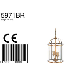 Lámpara colgante de 2 luces de bronce con forma de linterna de vidrio Steinhauer Pimpernel