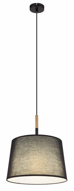 Descubre el sutil encanto de la lámpara colgante TL – una hermosa combinación de estilo y función. La lámpara se caracteriza por un soporte redondo en el techo del cual cuelga un cable de 1,2 metros, decorado con elementos de madera, que termina en una pantalla de textil con forma elegante en negro clásico (diámetro de 38 cm). La lámpara tiene un casquillo E27 para una potencia máxima de 40 vatios, lo que te permite controlar la intensidad y el color de la luz. Para mayor durabilidad y eficiencia energética, recomendamos el uso de bombillas LED.