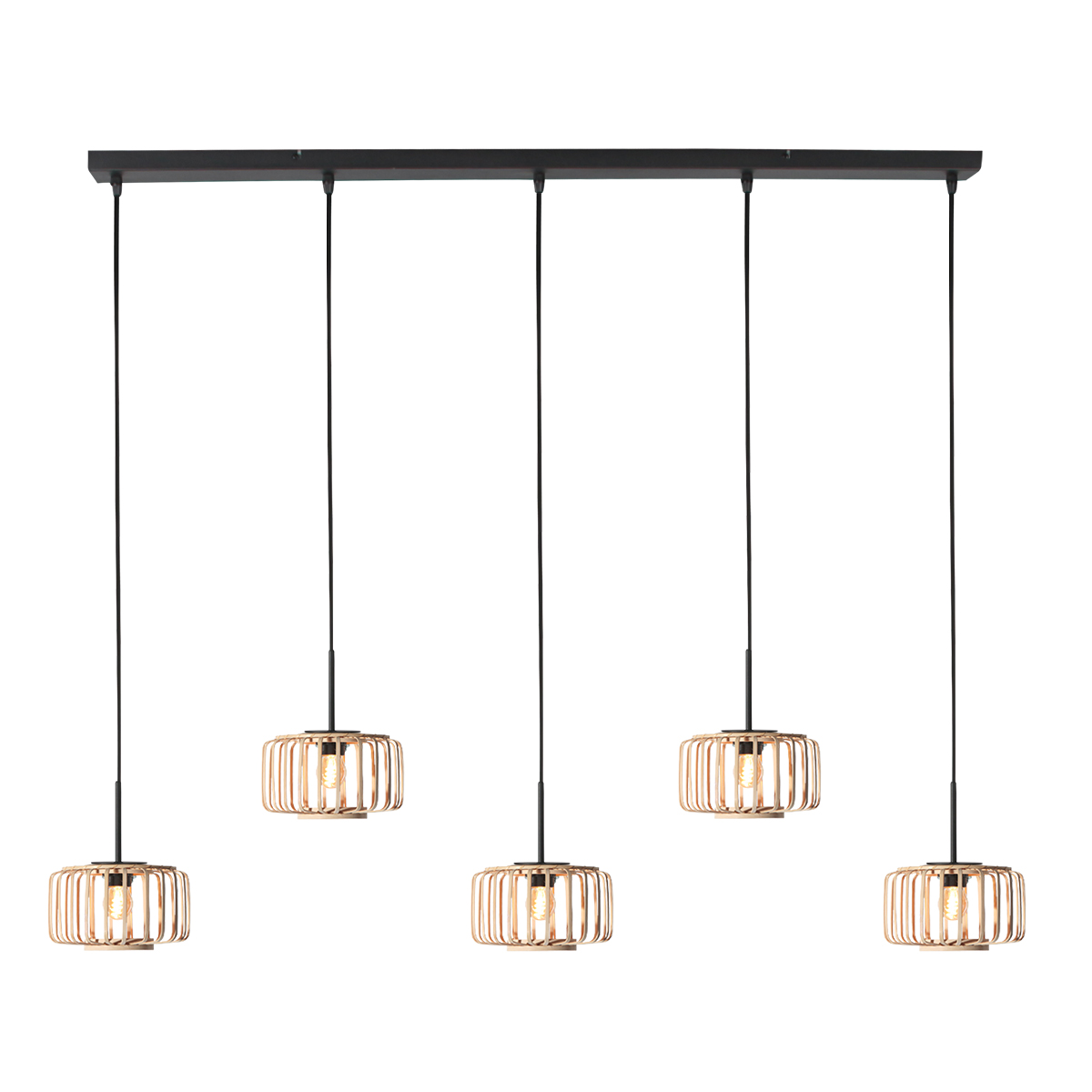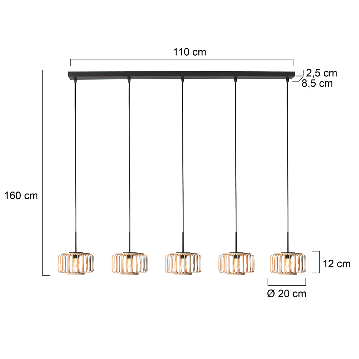Esta lámpara colgante HaloSwap de múltiples luces combina un colgante de barra negra con cinco pantallas de bambú natural de 20 cm cada una. La disposición en línea recta proporciona una distribución elegante y uniforme de la luz, perfecta para encima de una mesa de comedor, isla de cocina o barra. El color natural del bambú le da a la lámpara una apariencia cálida y tranquila que encaja perfectamente en interiores modernos y escandinavos.