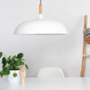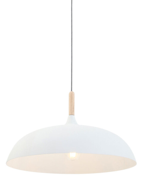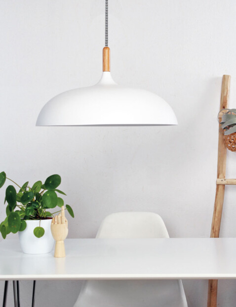 Lámpara colgante escandinava de metal blanco y madera Mexlite Bjorr
