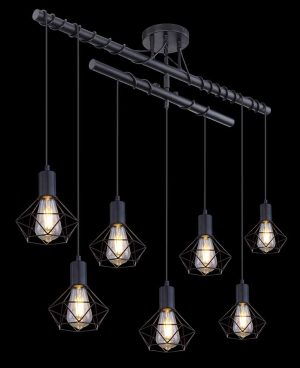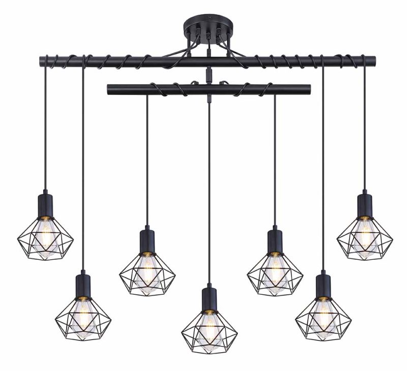 Lámpara colgante de 2 varillas negro 7 pantallas diamante Globo Xara I