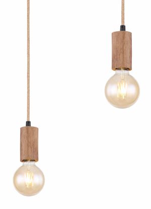Lámpara colgante de 3 luces natural/negra madera/cuerda de cáñamo Globo Frida