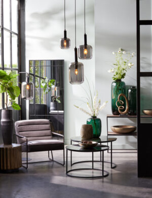 Lámpara colgante de cristal gris con acabado elegante Light & Living Lekar
