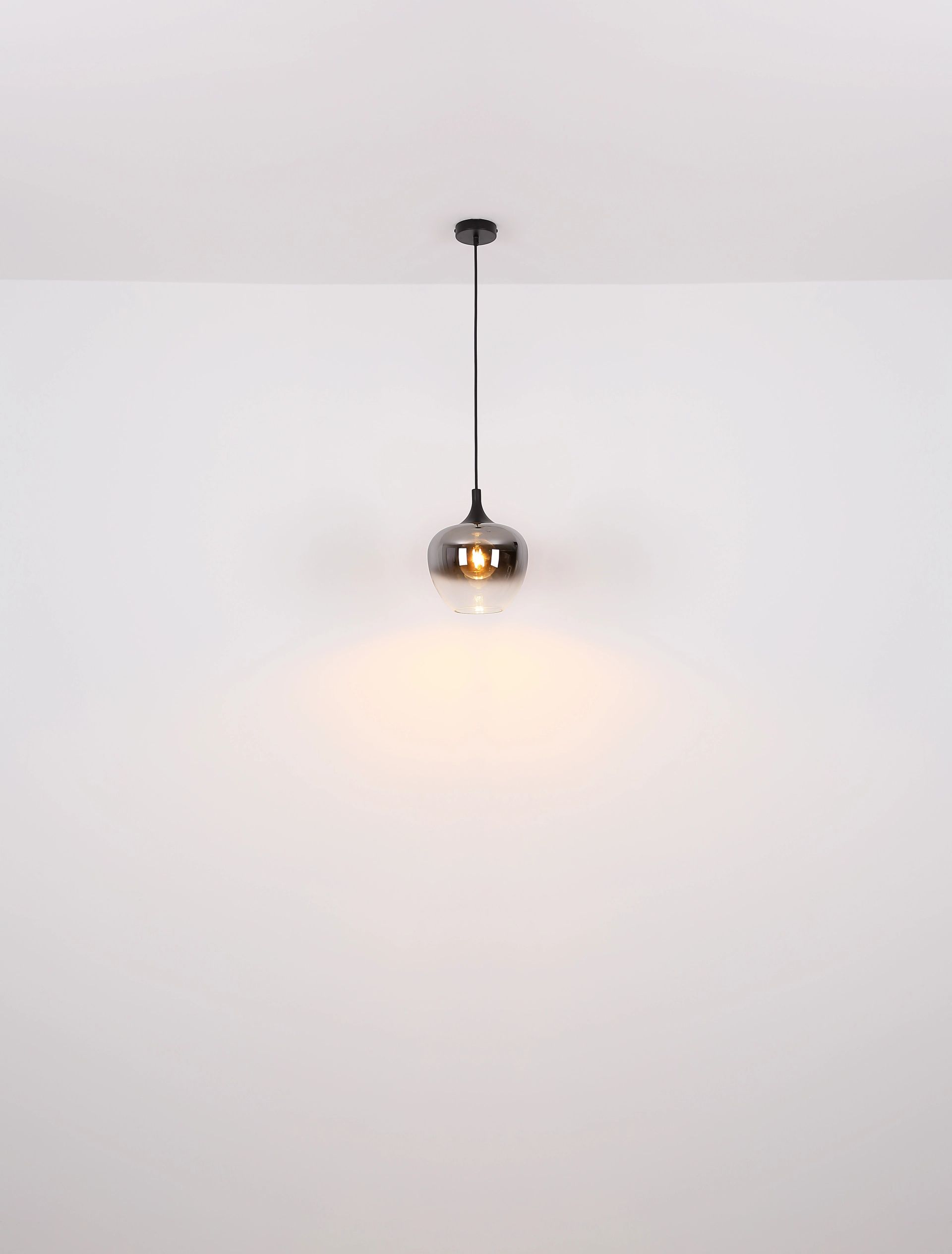 Conoce esta hermosa lámpara colgante que inmediatamente capta la atención por su diseño único. La lámpara está equipada con un soporte de techo redondo y un cable de 1,2 metros que conduce a un casquillo E27. Esto te brinda la libertad de ajustar el color y la intensidad de la luz según tus deseos, con una potencia máxima de 40 vatios. La elegante pantalla de vidrio ahumado tiene un diámetro de 24 cm y crea una atmósfera acogedora, lo que la hace perfecta para cualquier decoración.