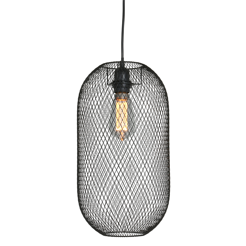¿Te gusta lo ligero? Entonces la “Bodine” de Mexlites es una lámpara colgante ovalada hecha de malla, perfecta para ti. Los rombos en forma de diamante de la malla le dan a esta lámpara colgante un efecto juguetón. Esta lámpara colgante negra luce bien sobre mesas de comedor, pero también aporta un efecto sorprendente en un pasillo. Coloca una bonita fuente de luz y tendrás una pieza llamativa!