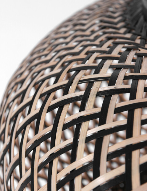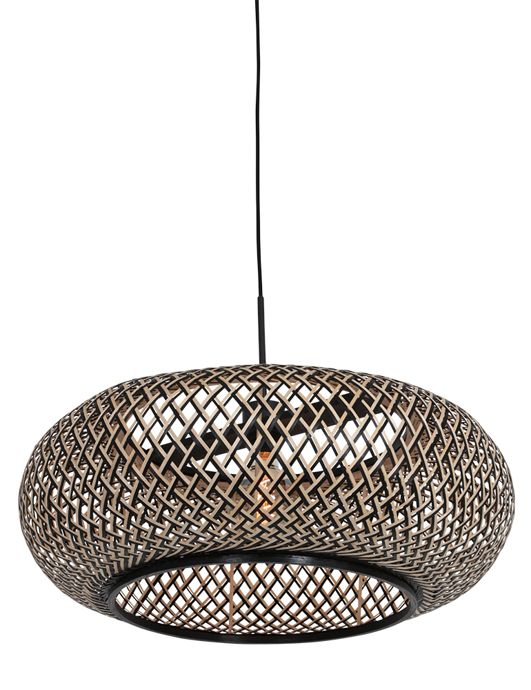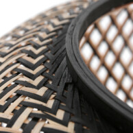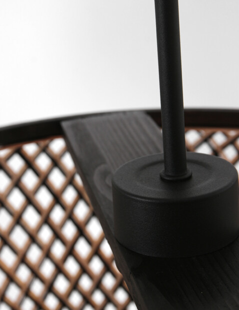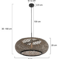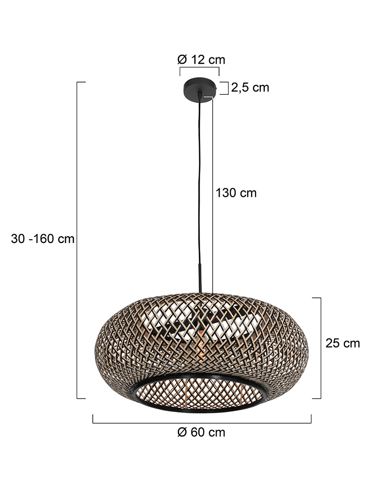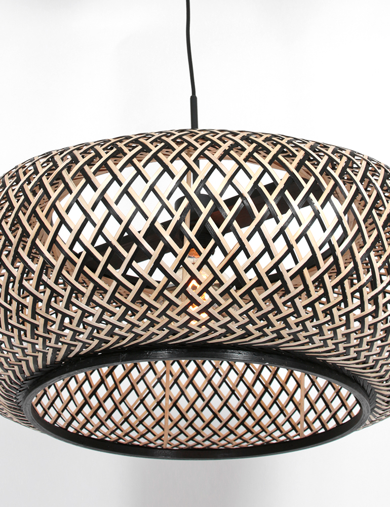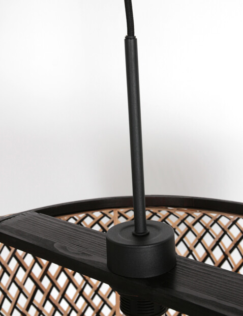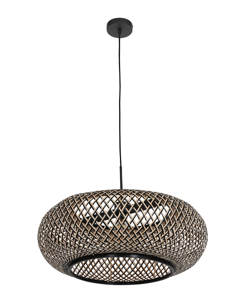 Con un diámetro generoso de 60 cm y una suspensión ajustable en altura de 30 a 160 cm, esta lámpara colgante se adapta sin esfuerzo a diversos interiores. La combinación de madera y bambú aporta un aspecto orgánico y rústico. Una adición versátil y decorativa para los amantes de los materiales naturales. Incluye dos años de garantía de fábrica.