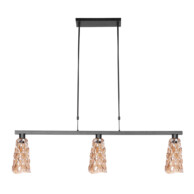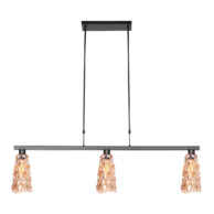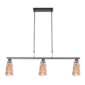 La lámpara colgante de vidrio ámbar Vidrio de Steinhauer combina el encanto retro con un diseño moderno. Los tres vidrios en forma de copa, ondulados y en un tono cálido, difunden una luz acogedora y atractiva. El armazón negro añade un toque contemporáneo y es ajustable en altura de 100 a 160 cm. Con un ancho de 120 cm, esta lámpara de diseño es una adición destacada para el comedor, la oficina en casa o la sala de estar. Compatible con una fuente de luz E27 y viene con 2 años de garantía del fabricante.