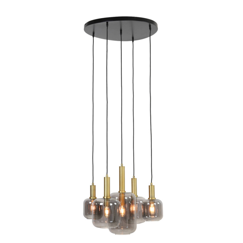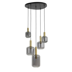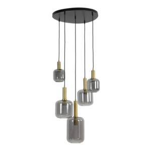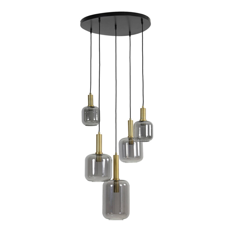 Lámpara colgante de vidrio en negro con detalles en dorado Light and Living Lekar