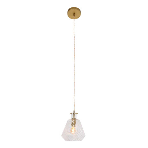 La lámpara colgante Grazio Glass de Mexlite irradia clase y refinamiento. La combinación de vidrio transparente y acentos de latón ofrece un diseño atemporal y elegante. Los sutiles patrones geométricos en el vidrio crean un juego de luces juguetón, ideal para iluminar comedores, salas de estar o pasillos.