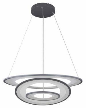 Haz una declaración con la lámpara colgante TORRELLE LED, una solución de iluminación premium, multifuncional y moderna. Los únicos anillos de luz de metal grafito transforman tu espacio vital en un verdadero espectáculo de luz. Con el control remoto que se incluye con la lámpara, puedes elegir entre tres intensidades de luz y ajustar sin esfuerzo el color de la luz a tu estado de ánimo, para crear la atmósfera perfecta. El módulo LED incorporado ofrece una impresionante potencia de 100 vatios y 3600 lúmenes, y proporciona una iluminación sin preocupaciones durante años con una vida útil de 20.000 horas.