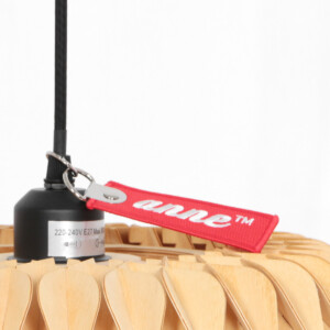 La lámpara colgante Maze de Anne Light and Home añade un acento lúdico y moderno a tu hogar. Las únicas lamas de madera, dispuestas en un patrón dinámico, crean un fascinante efecto de luz. Suspendida de un robusto cable negro tipo plancha y con un diámetro generoso de 46 cm, esta lámpara es un elemento artístico en cualquier espacio habitable.