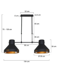 Opte por una lámpara robusta y atrevida con la lámpara colgante doble de Mexlite. Estas lámparas metálicas negras con interior dorado ofrecen un efecto especial. El calor te envuelve cuando enciendes la luz, pero cuando las lámparas están apagadas, también causan una gran impresión. Determina tú mismo la intensidad de la luz con la bombilla regulable y un regulador externo.