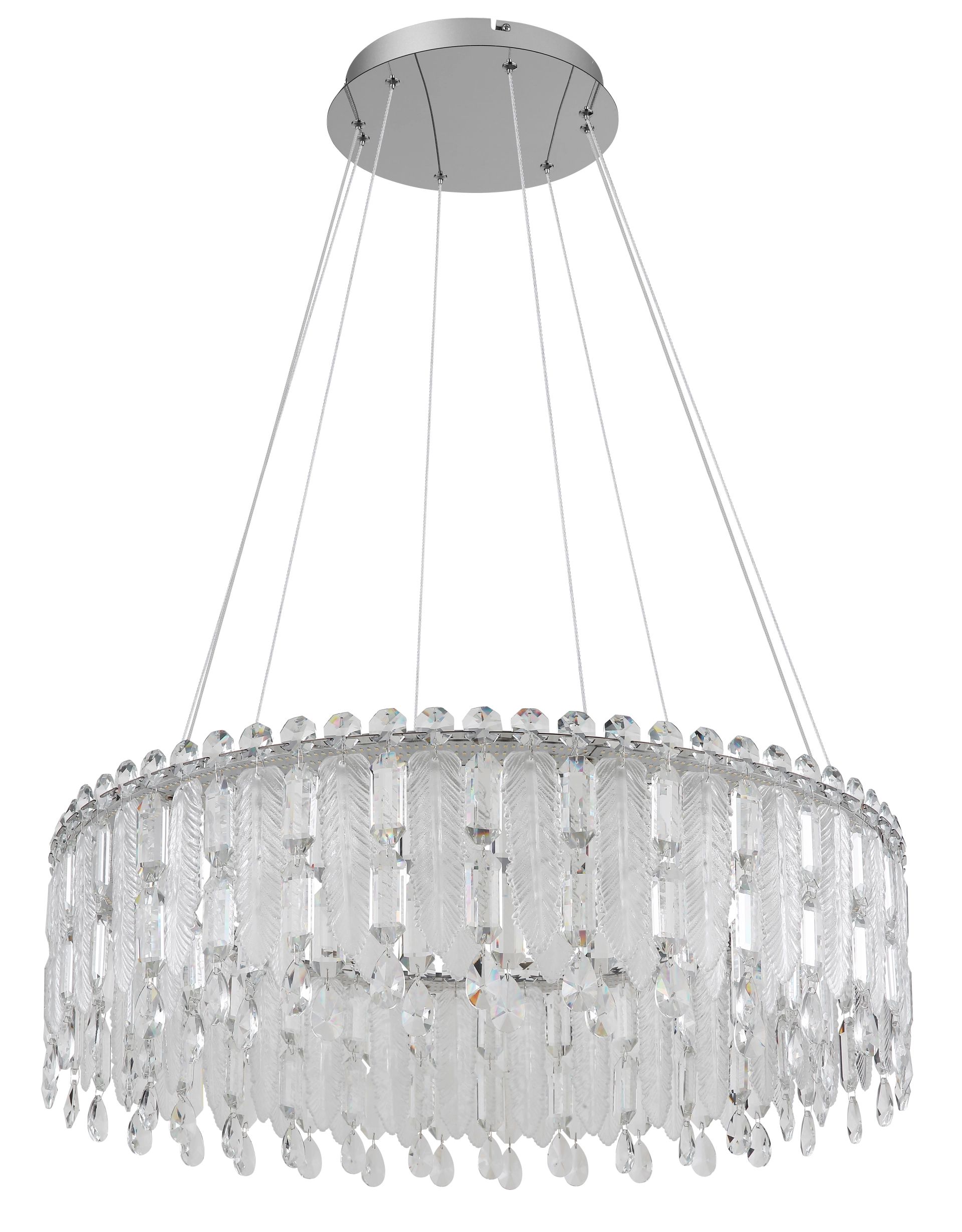 La lámpara colgante Klunka es una elegante lámpara que combina a la perfección un diseño moderno con materiales de alta calidad. El marco de metal niquelado forma una base hermosa para los impresionantes cristales K5 que cuelgan con brillantez. Con un diámetro generoso de 800 mm y una potencia de 78W, esta lámpara ofrece una impresionante salida de luz de 5070 lúmenes, iluminando así cada espacio con una iluminación clara y acogedora.