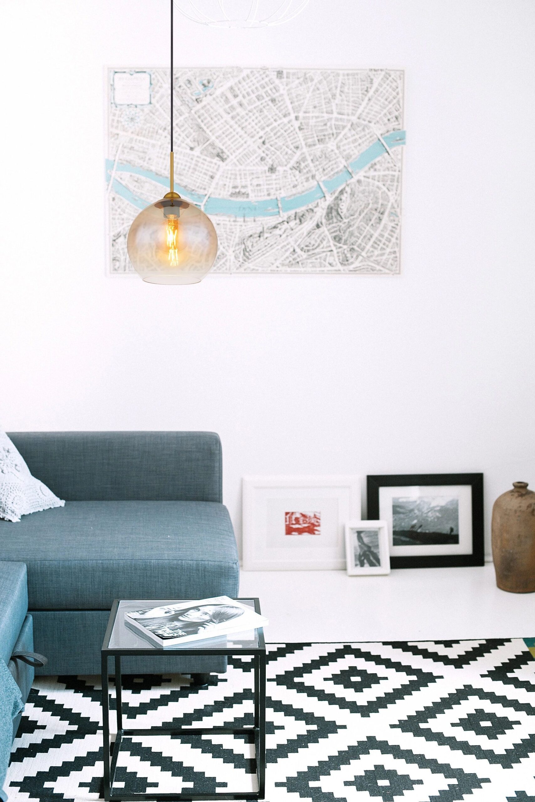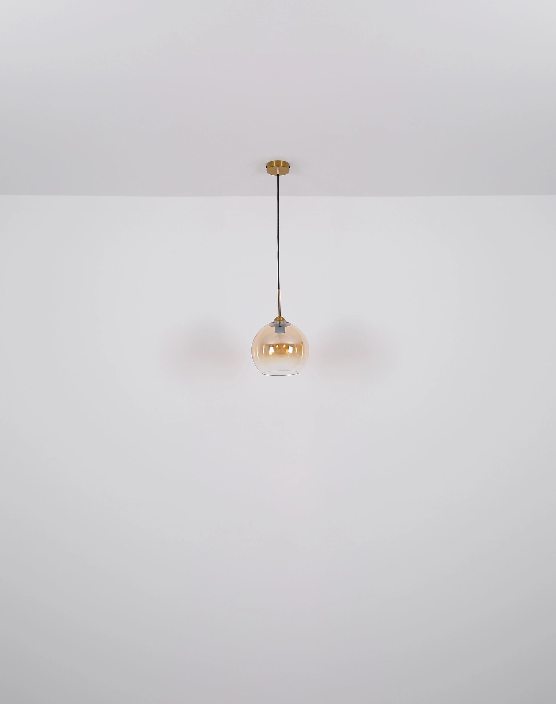 Esta elegante lámpara colgante se destaca por su diseño simple y estiloso. La lámpara está equipada con un soporte de techo redondo en un hermoso color latón, con un diámetro de 10 cm. Un cable de 1,2 metros conecta este soporte con el casquillo E27, lo que le brinda la posibilidad de usar la fuente de luz de su elección. La pantalla de vidrio ámbar, con un diámetro de 25 cm, crea una atmósfera cálida y acogedora en cualquier espacio.