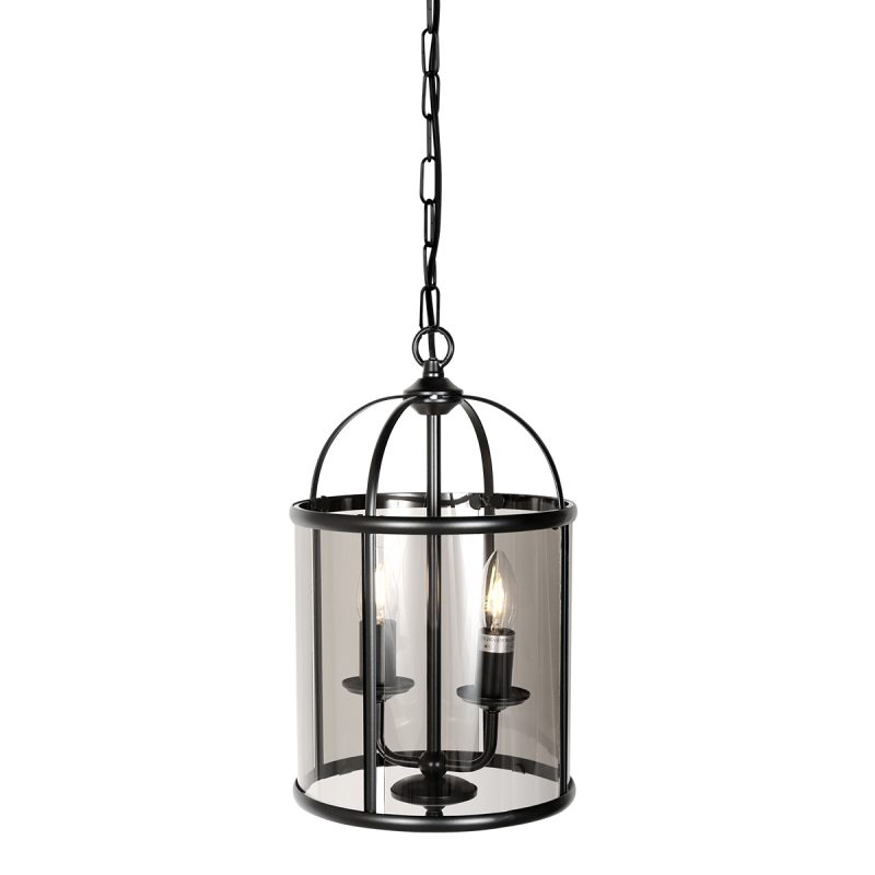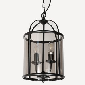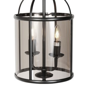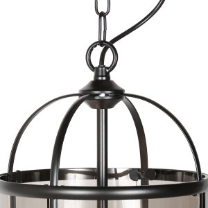 Lámpara colgante de 2 luces negra con forma de linterna de vidrio ahumado Steinhauer Pimpernel