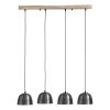 Ilumina cualquier espacio con esta lámpara colgante, que consta de dos cables que conducen a una viga de madera de 1,2 m. Cada uno de los cuatro cables termina en un portalámparas E27 con una pantalla metálica de color latón antiguo (Ø 18 cm). Se recomienda usarla con bombillas LED para ahorrar energía.