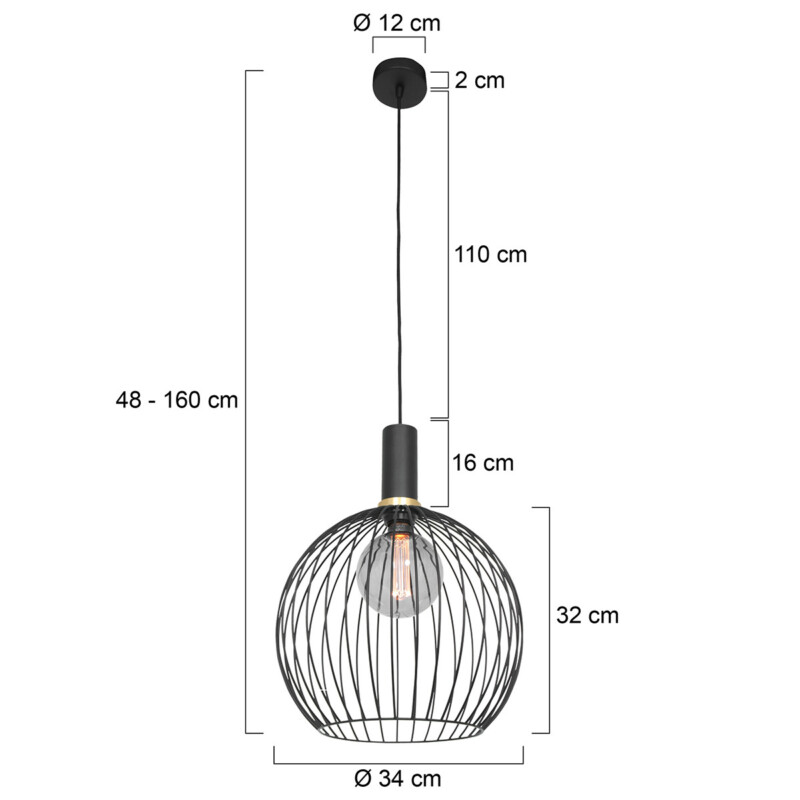 La lámpara colgante Aureole es un atractivo moderno con una estructura de alambre abierta. Con un diámetro de 34 cm y un casquillo E27, esta lámpara es ideal para una iluminación atmosférica. La pantalla abierta permite que una fuente de luz Decofilament brille en todo su esplendor. La lámpara es ajustable en altura hasta 160 cm y se entrega con un anillo negro y uno dorado, para que puedas elegir la apariencia que prefieras. Regulable en combinación con un regulador de pared y una fuente de luz adecuada.