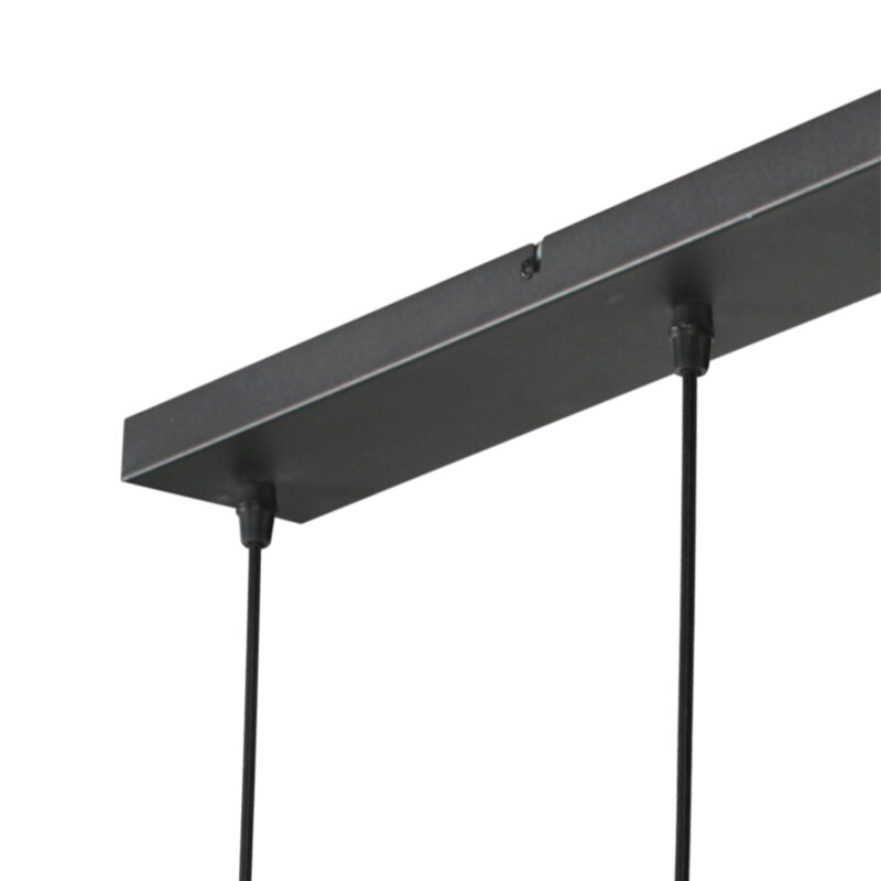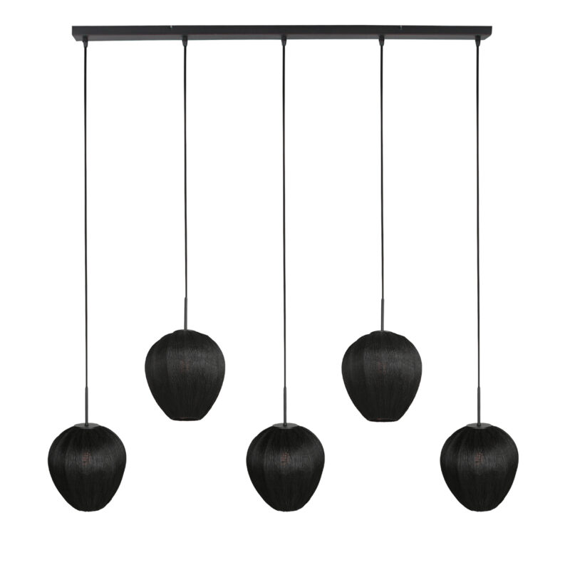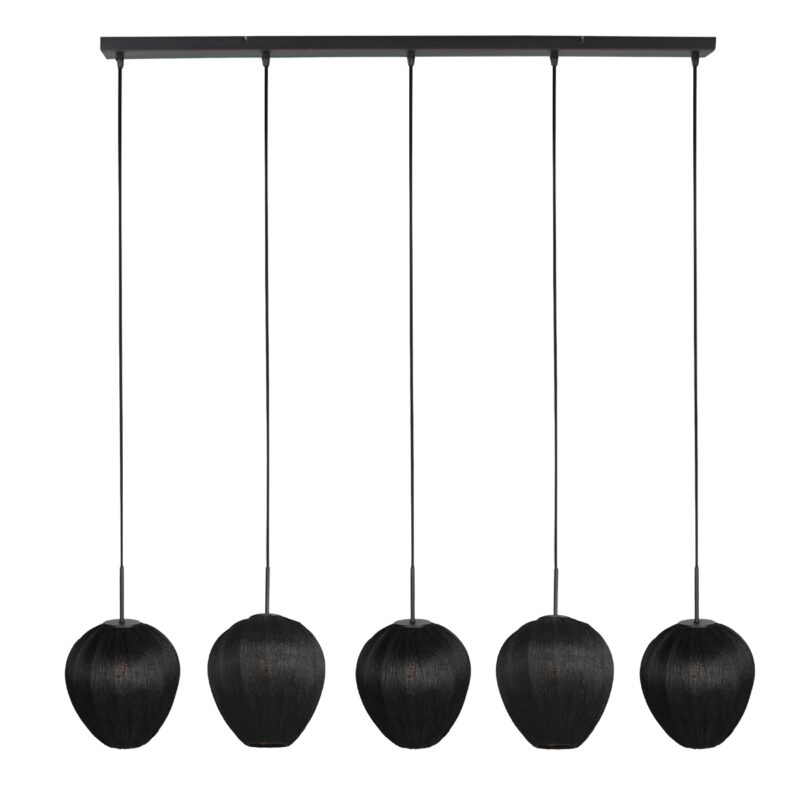 Esta lámpara colgante negra alargada con cinco puntos de luz está diseñada para combinar ambiente y flexibilidad. Cada punto de luz cuelga de un robusto cable de hierro de hasta 150 cm, permitiéndote decidir la altura. Ya sea que optes por una línea recta o una composición juguetona: esta lámpara se adapta sin esfuerzo a tu estilo de interior.
