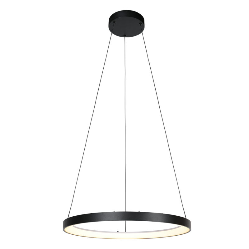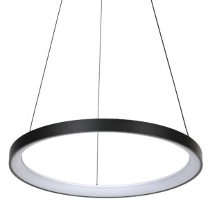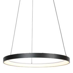La lámpara colgante Circolare combina diseño moderno con tecnología avanzada y emana elegancia en cada espacio. Con un diámetro generoso de 58 cm y un diseño ajustable en altura (50-130 cm), esta lámpara de anillo negra se adapta perfectamente sobre la mesa del comedor, en el pasillo o en la sala de estar. El módulo LED integrado de 33W ofrece una potente emisión de luz de 3300 lúmenes en blanco cálido (2700K) y es regulable para crear una atmósfera acogedora.