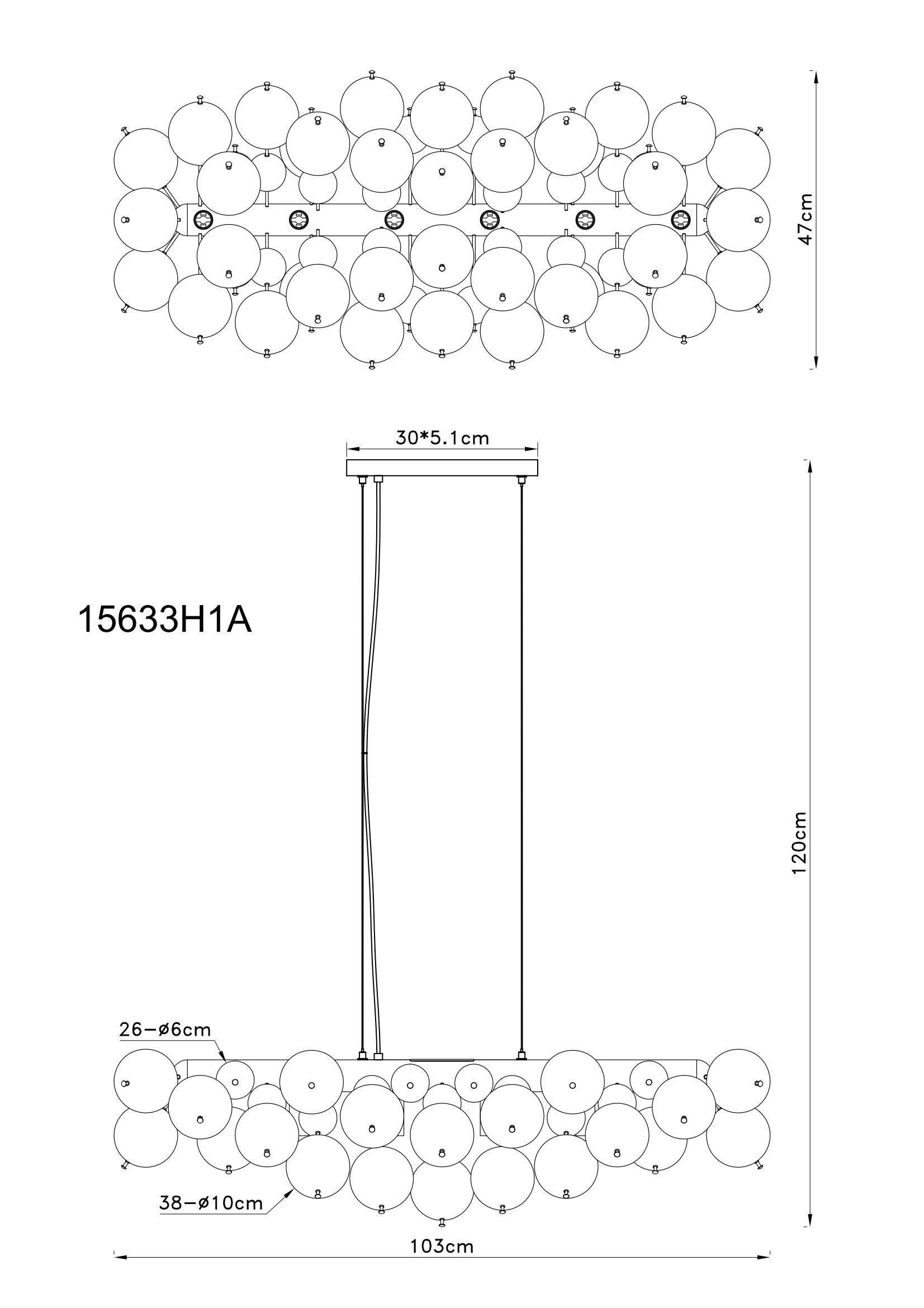 La lámpara colgante UDO es un hermoso juego de diseño e iluminación. El riel alargado con líneas limpias está soportado a ambos lados por elegantes barras, decoradas con esferas de varios tamaños. Esta construcción única proporciona una apariencia llamativa y emite una hermosa luz en el espacio.