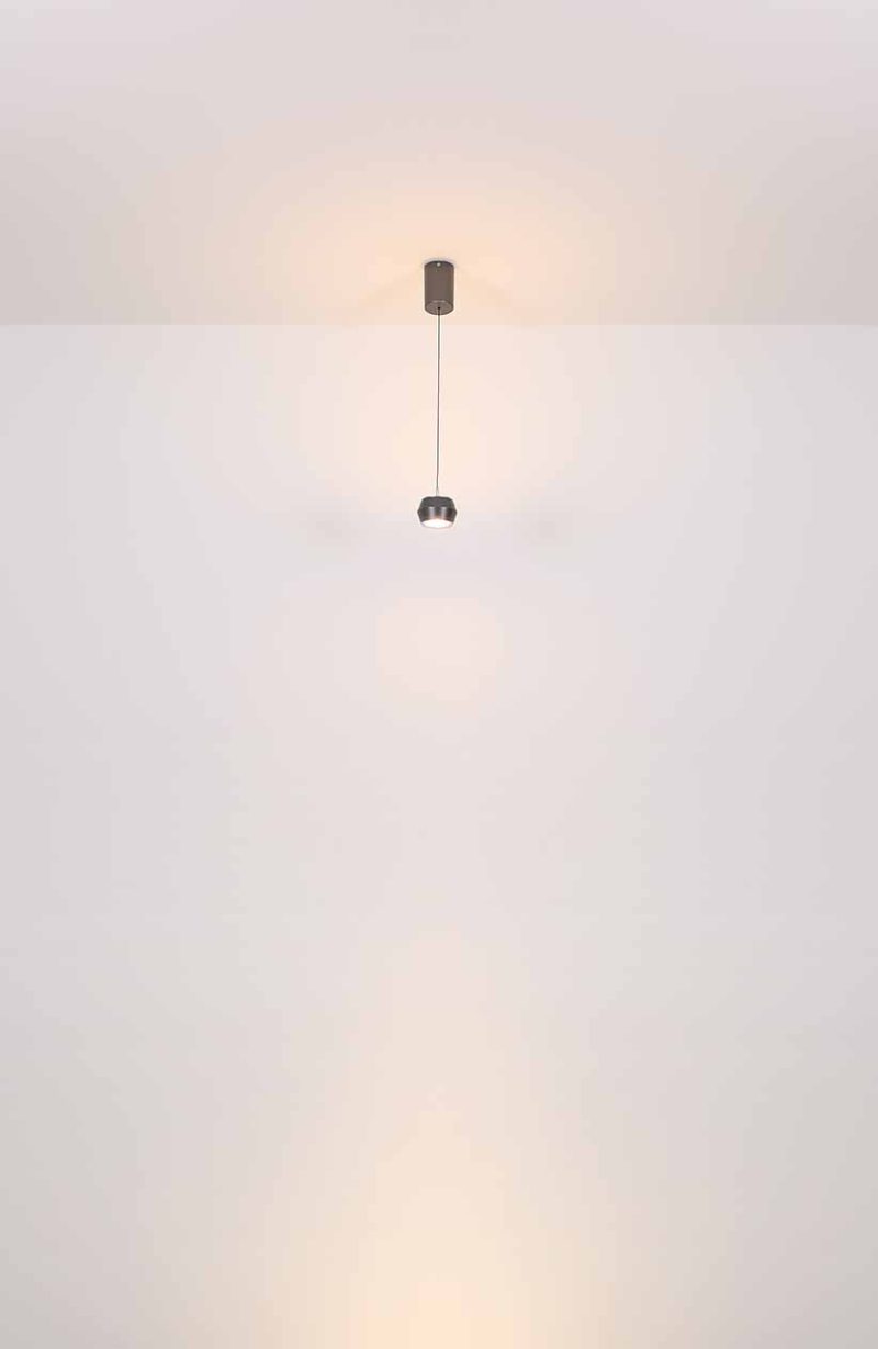 La lámpara colgante redonda MARTHY combina estilo y modernidad. Hecha de metal gris mate, acrílico opalino y acabada con un anillo cromado, esta lámpara tiene un diámetro de 100 mm. Con una salida de luz de 300 lm y una temperatura de color de 3000K, la MARTHY ofrece una iluminación cálida y uniforme.