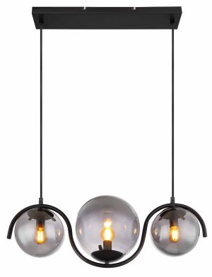 Sumerja su espacio en un ambiente acogedor con nuestra elegante lámpara colgante. Esta instalación de luz consta de dos cables negros mates que descienden con gracia de un esbelto soporte de techo hasta una barra metálica en forma de S. Tres portalámparas E14, cuidadosamente encapsulados en elegantes pantallas de vidrio ahumado, se encuentran en esta barra. Los portalámparas ofrecen la libertad de ajustar el color y la intensidad de la luz, con una capacidad máxima de 25 vatios. Para mayor durabilidad y eficiencia energética, recomendamos el uso de bombillas LED.
