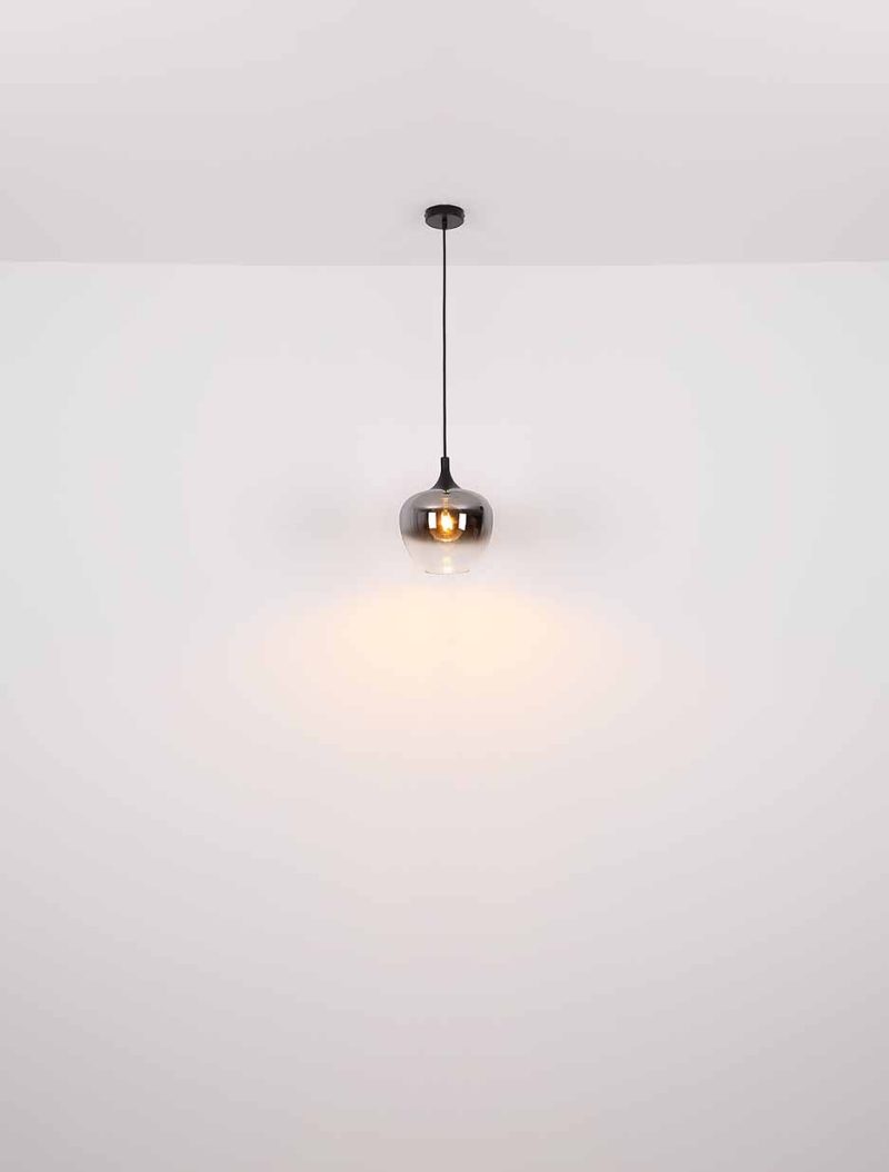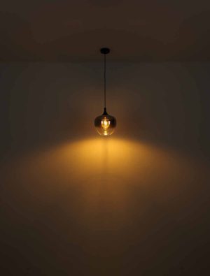 Esta hermosa lámpara colgante inspira con un diseño moderno. Un cable de 1,2 m sobresale de un soporte de techo redondo, que termina en un casquillo E27 con una elegante pantalla de vidrio ahumado (Ø 29 cm). Con el casquillo E27, puede elegir el color de la luz y el brillo hasta una potencia máxima de 60 vatios. Debido a la larga vida útil y al ahorro de energía, recomendamos bombillas LED.