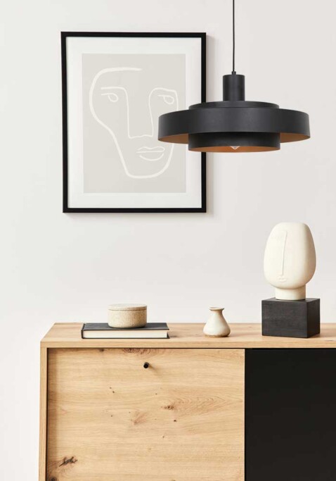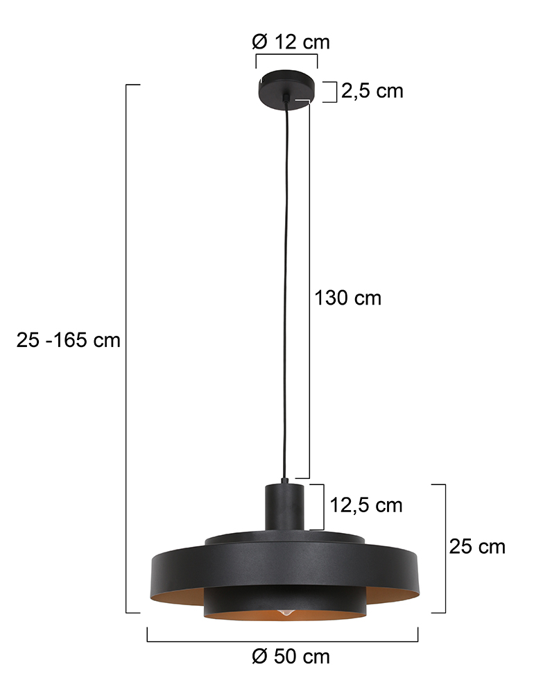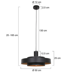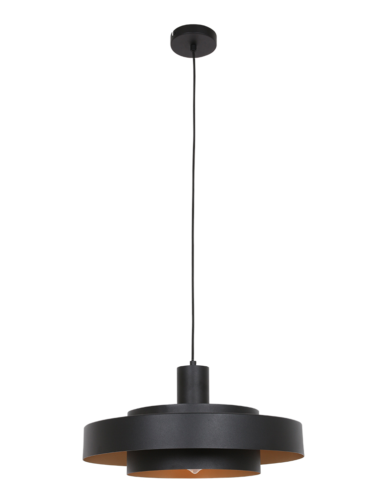 Haz una declaración de estilo con la lámpara colgante Flinter en negro. La lámpara está formada por finos anillos metálicos moldeados con un cálido interior dorado, lo que crea un sutil y acogedor efecto de luz. La parte superior abierta permite que la luz se proyecte también hacia el techo, añadiendo profundidad a tu espacio. Con un diámetro de 50 cm y una altura ajustable entre 25 y 165 cm, esta lámpara se adapta sin esfuerzo sobre una mesa de comedor, isla de cocina o rincón de estar. El casquillo E27 permite usar una fuente de luz a tu elección, para que puedas determinar el color y la intensidad de la luz. Esta elegante lámpara colgante combina un diseño moderno con acentos cálidos y encaja perfectamente en un interior contemporáneo. Esta lámpara colgante de la marca Anne Lighting se ofrece con 2 años de garantía.