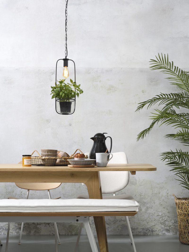 Esta lámpara colgante negra con maceta combina un diseño moderno con funcionalidad. Perfecta para el comedor, el pasillo, el dormitorio o la sala de estar. Equipado con un casquillo E27 y a prueba de polvo (IP20). Añade verde y estilo a tu espacio.