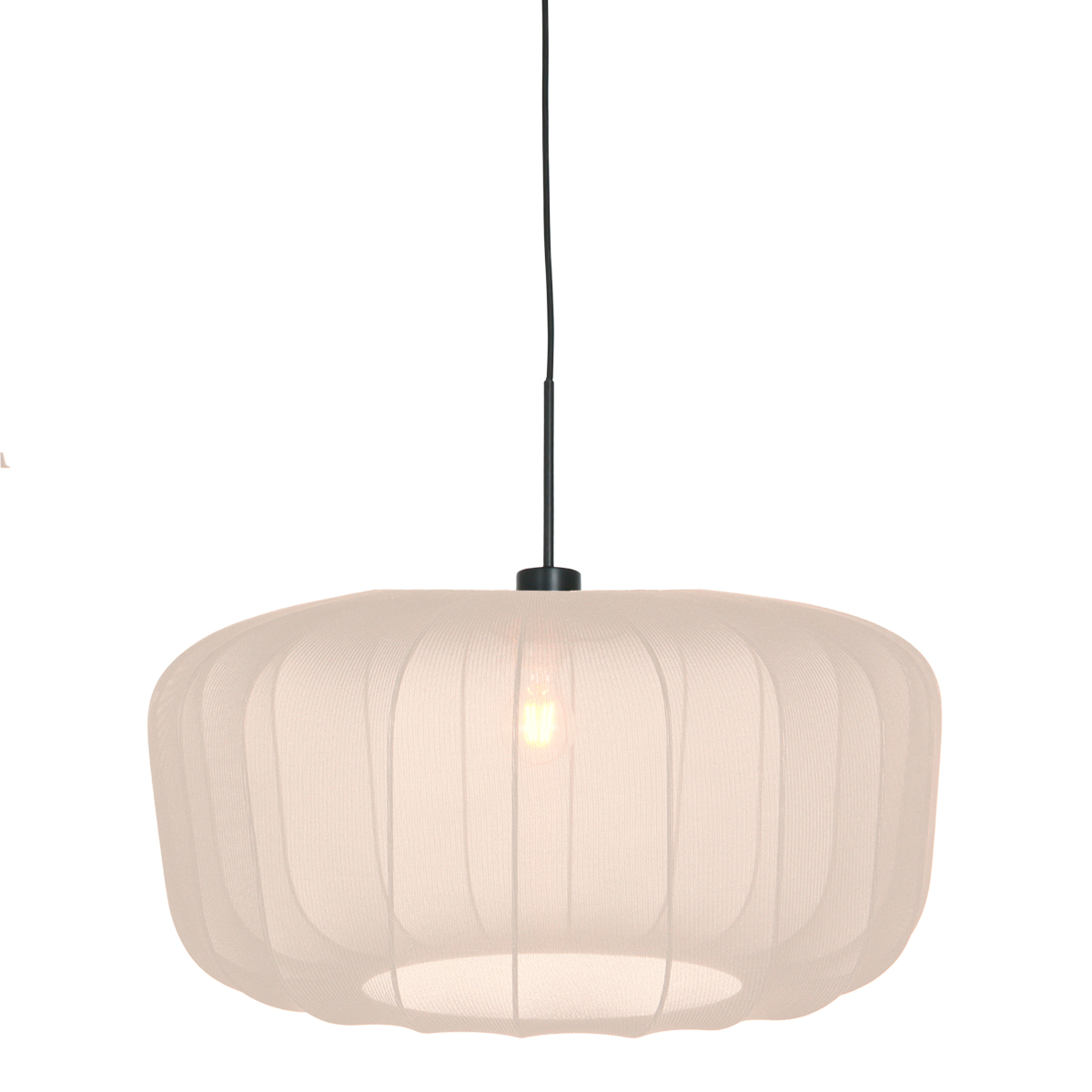 La suspensión negra de la serie Sparkled Light forma una base elegante para la amplia pantalla color crema de 60 por 30 centímetros. La suspensión está fabricada en metal negro, es ajustable en altura y equipada con un casquillo E27, lo que te permite elegir fácilmente la fuente de luz deseada. El diseño es moderno y minimalista, lo que lo hace perfecto para diversos estilos de decoración.