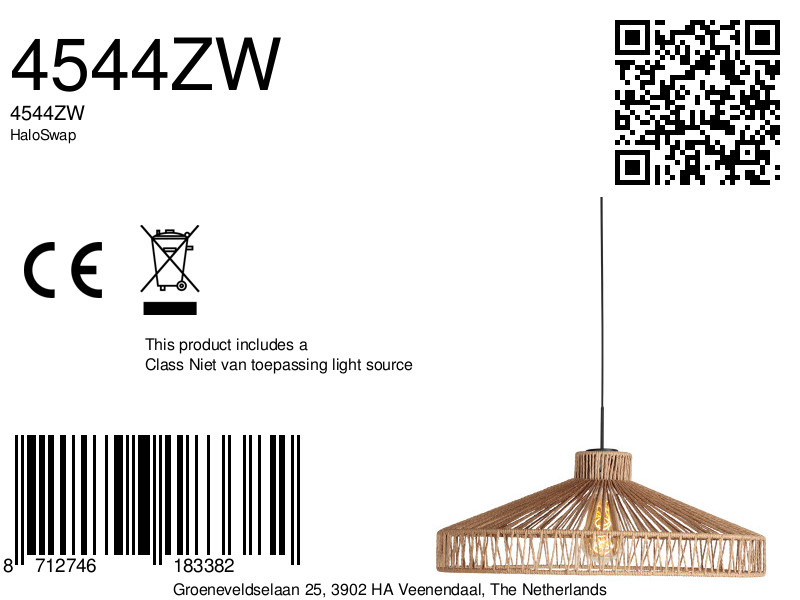 La gran pantalla de cuerda, de aproximadamente 50 centímetros de ancho y 19 centímetros de alto, tiene una estructura abierta y trenzada que crea un juego de luces juguetón en la pared y el techo. El color natural de la cuerda le da a la habitación una atmósfera bohemia y relajada, especialmente en combinación con una lámpara de filamento decorativa. Esta combinación es muy adecuada sobre la mesa del comedor o como lámpara destacada en la sala de estar.