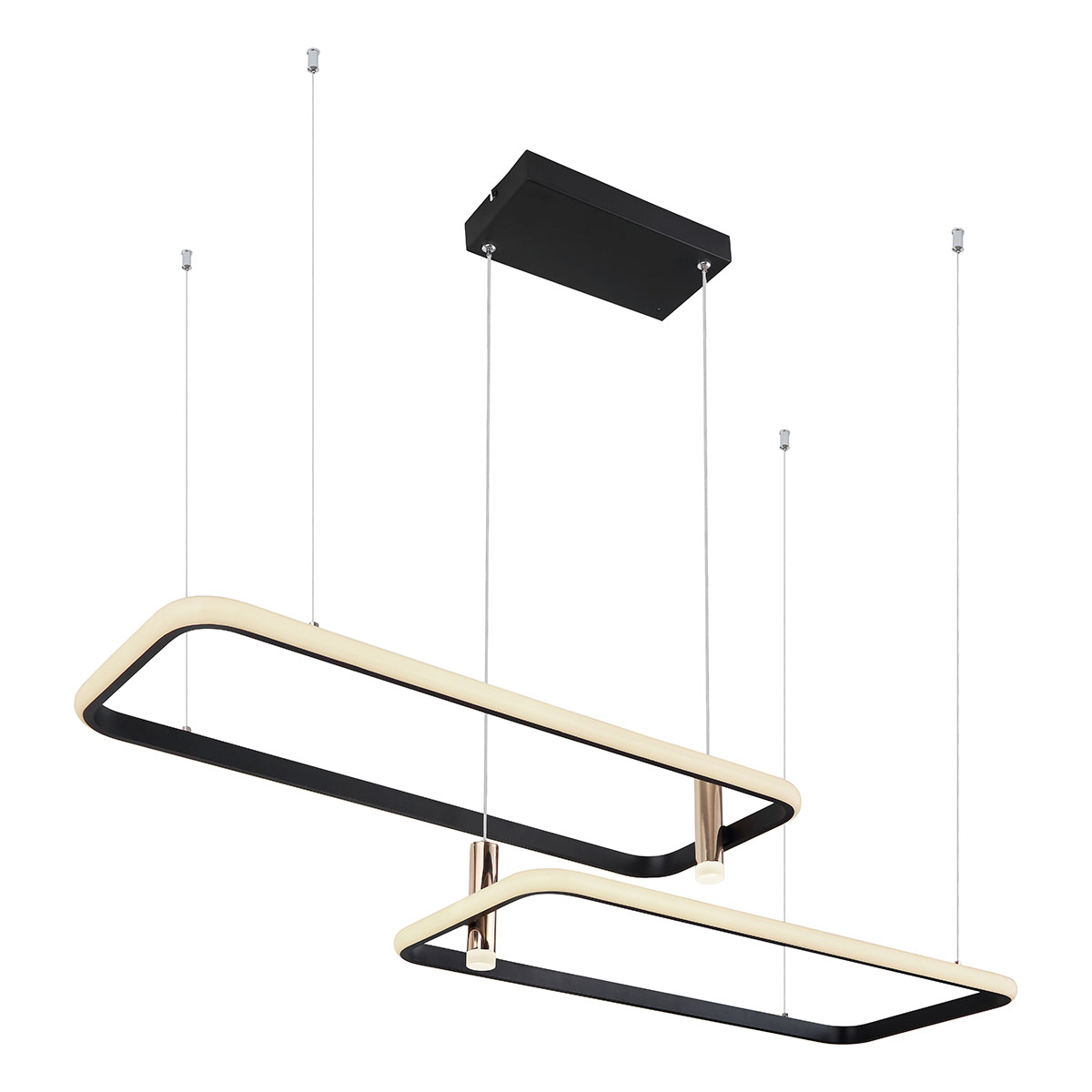Experimenta la belleza inigualable de nuestra lámpara colgante vanguardista de la exclusiva colección Coco. Su diseño radiante, compuesto por dos anillos superpuestos de metal negro mate y sostenido por dos barras de aluminio dorado, ofrece una impresionante exhibición de luz de 2000 lúmenes. Las lámparas LED, acentuadas por acrílico opal, son totalmente ajustables en cuanto a brillo y temperatura de color; simplemente alterna entre blanco cálido y blanco frío (rango: 2700-6000 Kelvin) o utiliza la práctica función de luz nocturna, todo a través del control remoto incluido. Crea un hermoso interior coherente combinando esta lámpara colgante con otros elementos de la misma línea.