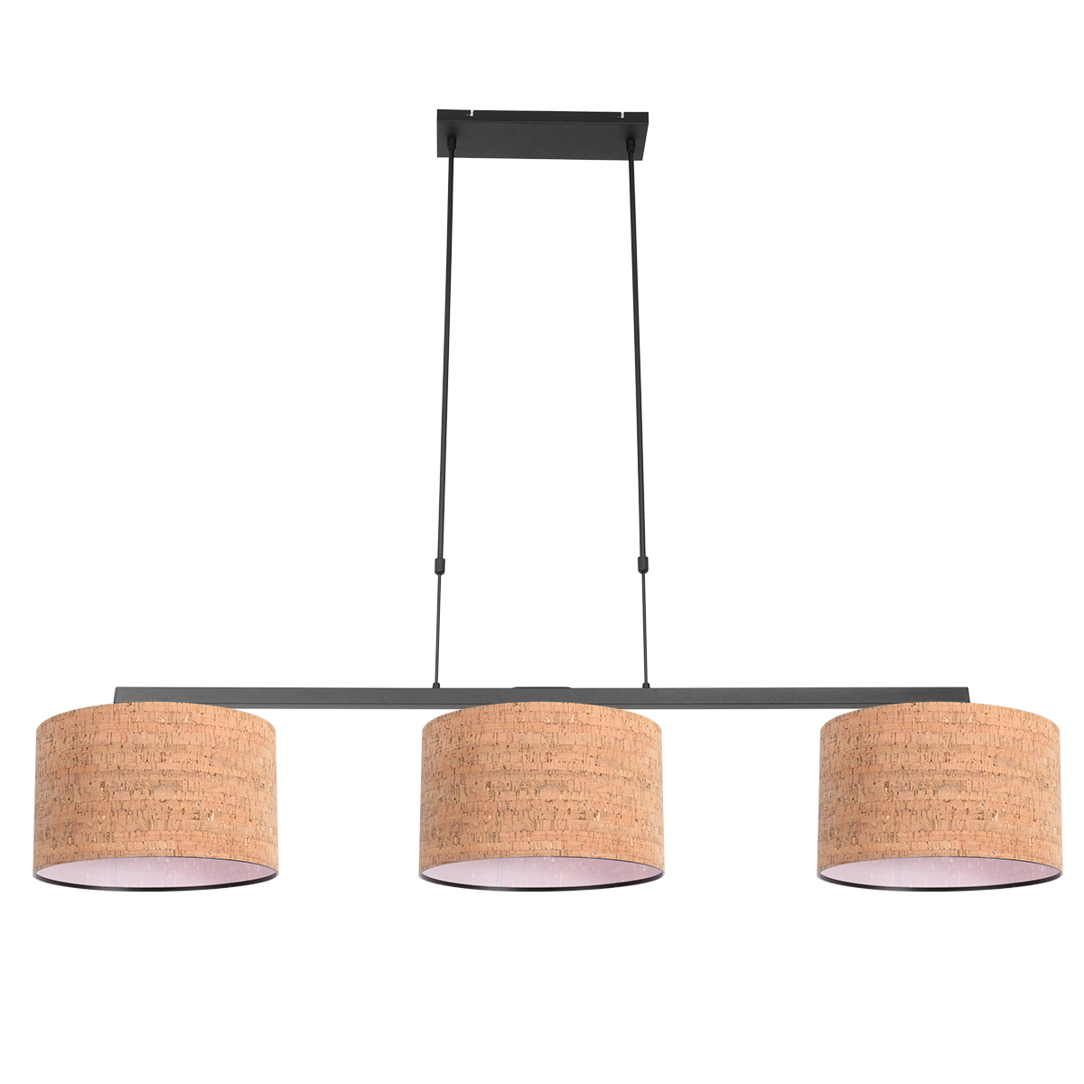Lámpara colgante negra de tres luces con pantallas de corcho Steinhauer Stang